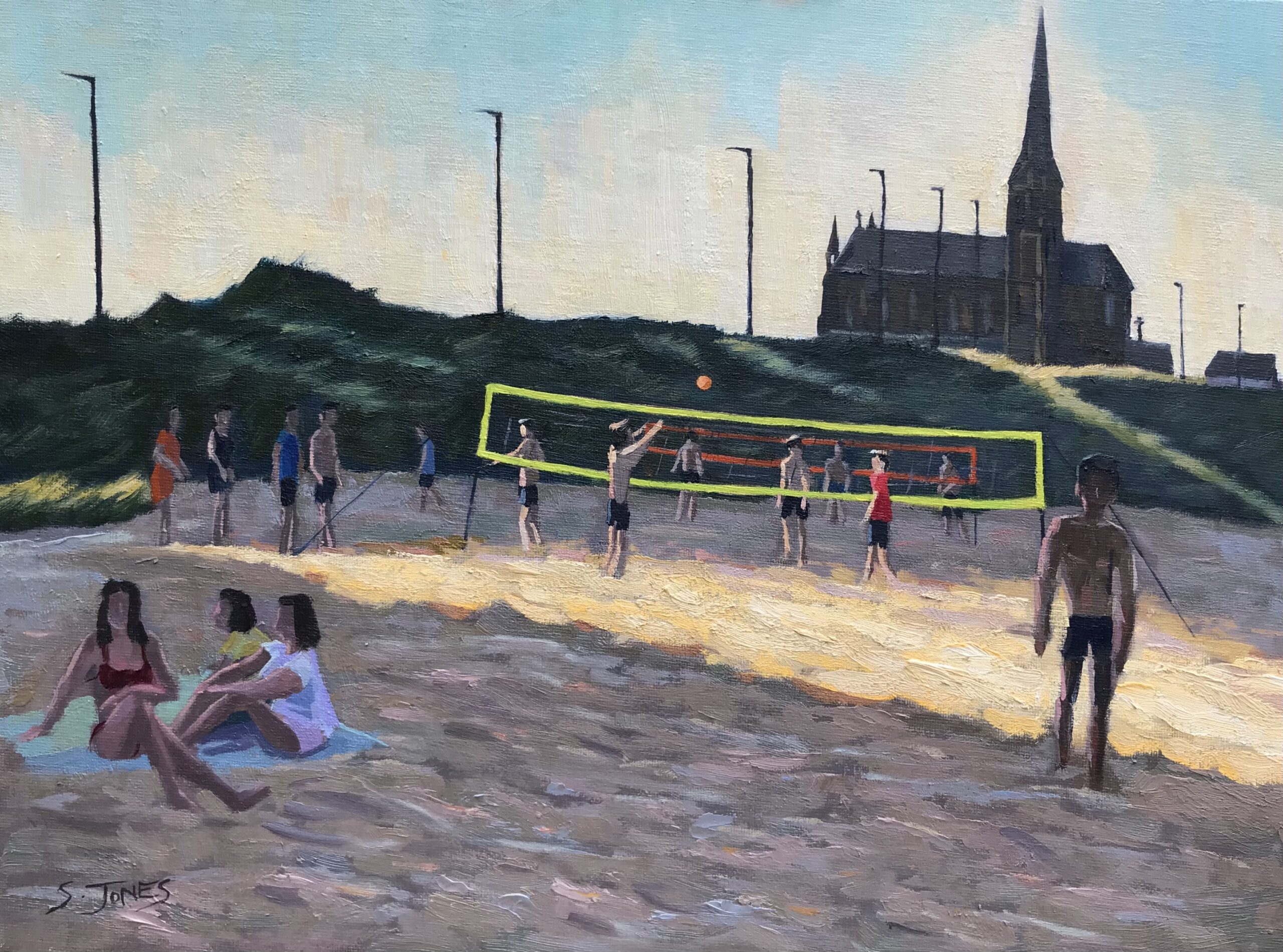 A studio painting developed from a small plein air done on location. I was interested in recreating the effect of the light on the beach and adding a group of figures in the foreground to balance the composition.